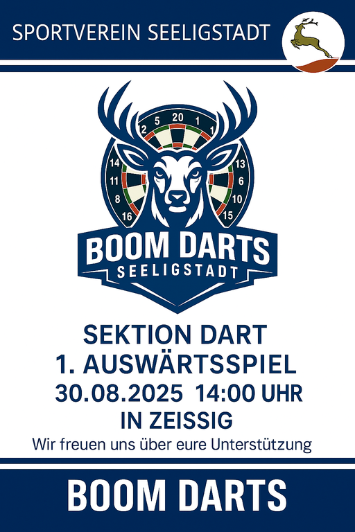 Auch unsere neue Sektion Dart konnte ein erfolgreiches Debüt feiern: Das Team „Boom Darts“ bestritt ihr erstes Punktspiel in Zeissig – und startete gleich mit einem Sieg in die Saison. Ein gelungener Auftakt, auf den das ganze Team stolz sein kann.